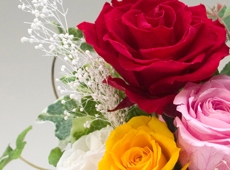 | 使用している花材 | バラ・フレンチマリアンヌ・かすみ草(プリザーブドフラワー)葉・小花(フェイク)リボン(その他) |