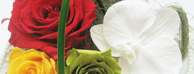 | 使用している花材 | バラ・胡蝶欄・ベアーグラス・ソフトショートアスパラ(プリザーブドフラワー)シサル麻(その他) |