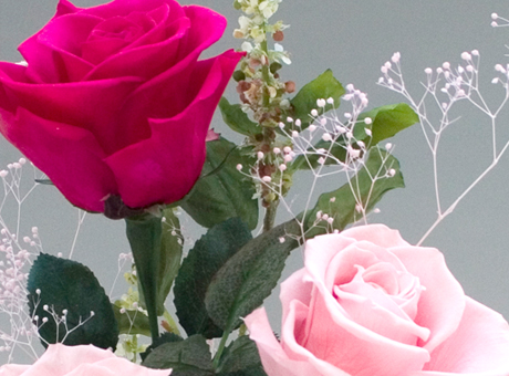 ピンクを基調としていますので、凛とした中にも可憐さを持ち合わせたかわいいアレンジメントになっています。