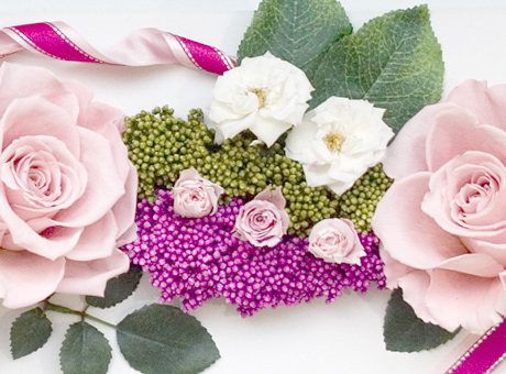 | 使用している花材 | バラ・あじさい・フレンチマリアンヌ・ライスフラワー(プリザーブドフラワー)葉(フェイク)リボン(その他) |